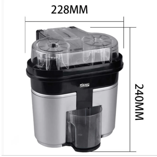 وقتی برای اولین بار آب مرکبات گیر DSP را میبینید، متوجه طراحی مدرن و مستحکم آن میشوید. بدنه ترکیبی از استیل و پلاستیک باکیفیت، هم دوام آن را تضمین میکند و هم ظاهری جذاب و چشمنواز به آن بخشیده است . این دستگاه به راحتی در فضای آشپزخانه شما جا خوش میکند و بهلطف پایههای ضد لغزش، حتی در حین کار پرفشار هم ثابت و مطمئن باقی میماند.