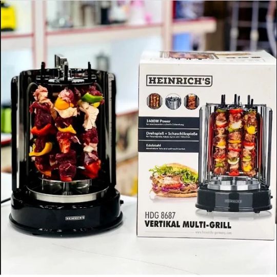 گریل برقی هنریچ مدل HDG 8687 با تکیه بر مشخصات فنی ، محصولی کاربری و حرفه ای است . ساخت آلمان و استفاده از استیل ضد زنگ در تمام بدنه و قطعات، نویدبخشنشان دهنده کیفیت ساخت بالا و دوام طولانیمدت است. توان ۱۴۰۰ واتی، ۶ عدد سیخ و به خصوص قابلیت سیخ جوجه گردان، عملکردی کارآمد و متنوع را برای پخت انواع کباب و جوجه فراهم میکنند. طراحی عمودی و ابعاد مناسب، آن را برای استفاده در فضاهای مختلف آشپزخانه ایدهآل میسازد و قابلیت جداسازی قطعات، نگهداری و نظافت آن را تسهیل میبخشد.