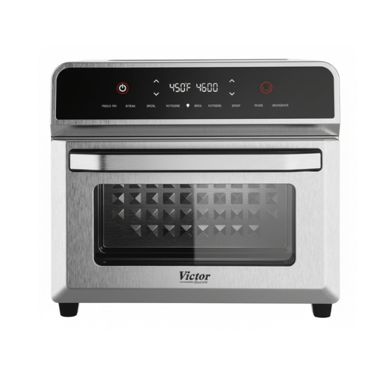 مهندسی ساخت ویکتور VK9920AO به گونهای است که طول عمر و کاربری آسان را تضمین میکند. بدنه باکیفیت از جنس استیل ضد زنگ، مقاومت دستگاه را در برابر حرارت و استفاده مکرر به نمایش میگذارد. برای افزایش کارایی، دستگاه مجهز به صفحه نمایش لمسی مدرن است که کنترلهای بسیار دقیق دما و تایمر را فراهم میسازد . استفاده از آن پیچیدگی ندارد و همه به راحتی می توانند از آن استفاده نمایند . شما میتوانید حرارت را از ۶۰ تا ۲۳۰ درجه سانتیگراد و زمان را تا ۶۰ دقیقه با دقت تنظیم کنید. یک مزیت کلیدی دیگر، وجود چراغ و پنجره شیشهای بزرگ است که به شما اجازه میدهد روند پخت را بدون باز کردن در و از دست دادن حرارت مشاهده کنید. این ویژگی کوچک اما مهم، پخت دقیق و بدون نقص غذا را تضمین میکند.